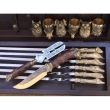 Ручки - художественное литье из бронзы, (при использовании РУЧКА НЕ НАГРЕВАЕТСЯ), покрытые теплостойким лаком. Набор поставляется в кейсе из массива бука.