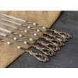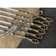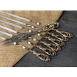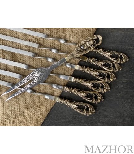 Подарочные шампура продаются в чехлах или кейсах(на выбор). Каждый шампур имеет литую ручку из бронзы(ручка не нагревается). Наборы состоят их шести шампуров. Этого хватит на тесную мужскую компанию.