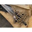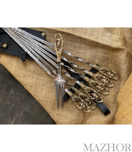 Подарочные шампура продаются в чехлах или кейсах(на выбор). Каждый шампур имеет литую ручку из бронзы(ручка не нагревается). Наборы состоят их шести шампуров. Этого хватит на тесную мужскую компанию.