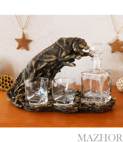 Штоф "Тигр в прыжке" подарочный набор для алкоголя ШП415 бронза